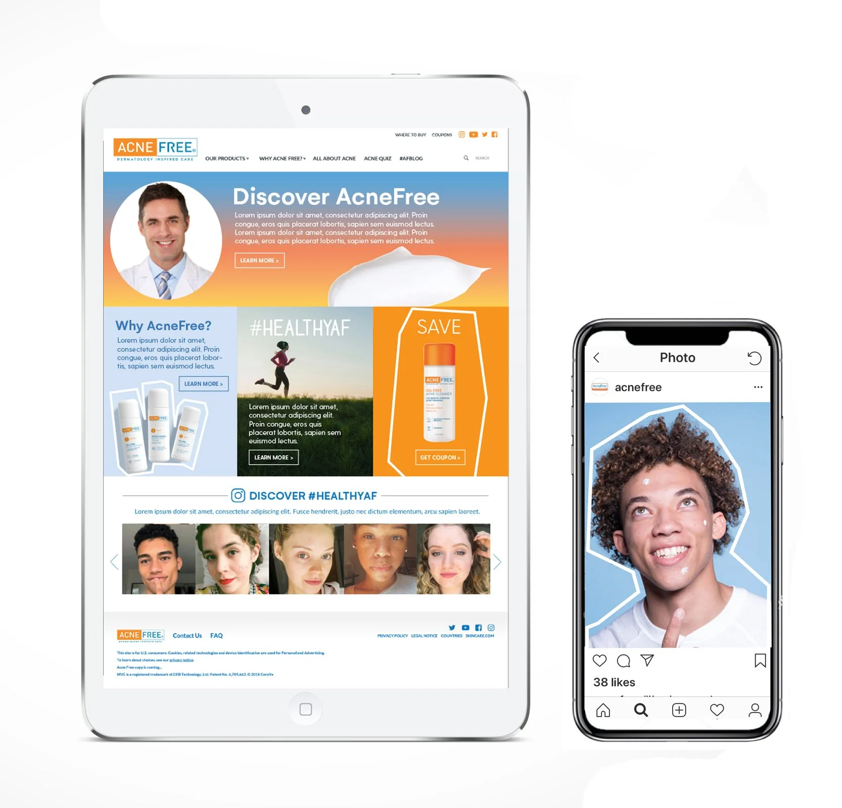 PROJECT: Complete Gen-Z brand exploration of social and digital assets for Acnefree. Freeing acne through the power of the collective. Skin care as health care.